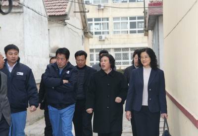 图为: 市政协副主席、市慈善总会副会长苑星莲女士陪同日方代表参观聋哑学校基础设施.