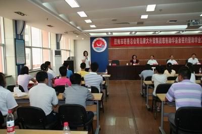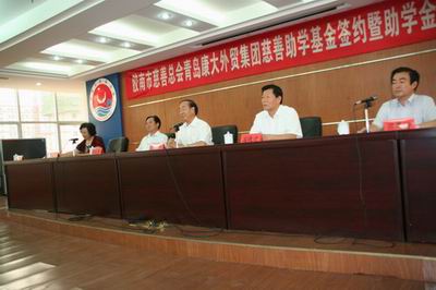 图四:青岛康大外贸集团慈善助学基金签约暨助学金发放仪式现场。