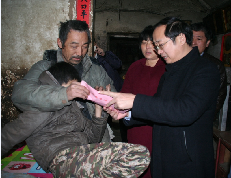 1月19日上午,区民政局局长、慈善总会副会长兼秘书长徐炳军冒寒走访慰问了胶南街道慈善救助对象宋广赞家庭,将10000元救助金送到其手中。 宋广赞,男,务农,家境贫寒,其父亲是建国前老党员,刚病逝;儿子宋继福,12岁,患脑瘤,智力、视力一级残疾,生活不能自理,属低保家庭。在宋广赞家中,徐会长亲切询问了其生活情况和当前存在的困难,鼓励他坚强起来,要坚信在党和政府及社会大家庭的帮助下,一定能战胜当前困难。 临行前,徐会长还特别嘱咐胶南街道社会事务办、慈善会工作人员要多关注宋广赞家庭,加强与相关救助部门沟通,做好跟踪保障服务,帮其渡过难关。 在此,365体育娱乐场衷心希望社会各界爱心人士共伸慈爱之手,为宋广赞家庭提供定向捐赠和志愿服务。