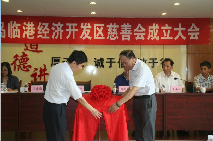 会上,区慈善总会会长宋建文、临港管区党工委书记徐春亮为慈善会揭牌。