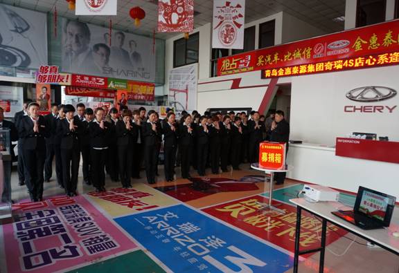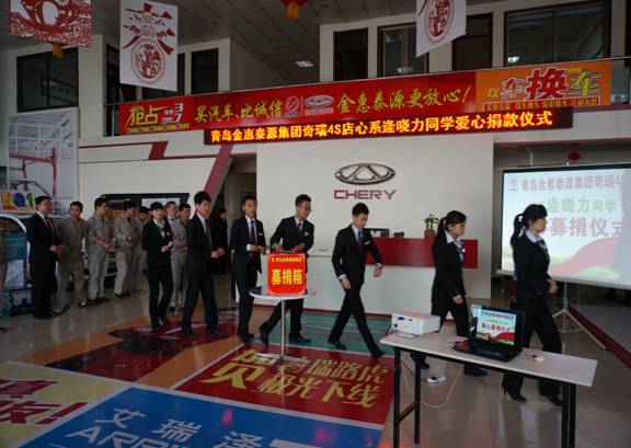 图四:青岛金惠泰源集团员工为骁力举行捐款仪式